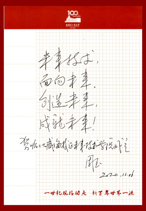 风云变幻,气象更新叹。面向未来学院建,卓越人才点赞。百年名校峥嵘,国之重器重重。工大群星灿烂,江山郁郁葱葱。