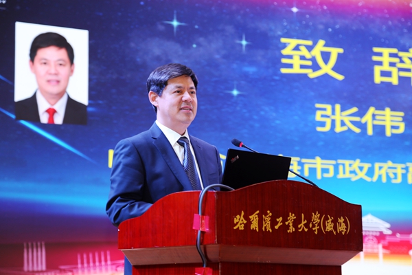张伟在讲话中代表威海市政府对哈工大(威海)未来技术学院的成立表示祝贺,他讲到,党的十九届五中全会提出的未来经济社会发展的12项重点任务中将科技创新放在了首位,习近平总书记也向广大科学家和科技工作者提出了坚持面向世界科技前沿、面向经济主战场、面向国家重大需求、面向人民生命健康的四项要求,这些都对高校的人才培养和科技工作提出了新的要求。哈工大(威海)未来技术学院的成立,既是深入贯彻落实党的十九届五中全会精神的生动实践,也是贯彻落实国家加快技术革新、推进产业高质量发展决策部署的重要举措,将为国家国民经济建设和社会发展培养更多的优秀人才。他对哈工大在威海办学35年来为威海市地方经济社会发展作出的贡献给予了高度评价,并表示威海市委市政府将一如既往地支持威海校区的发展,推动威海校区继续在地方新兴产业发展和未来产业布局中发挥人才和科技支撑作用,双方携手推动未来技术学院走向更好的未来。