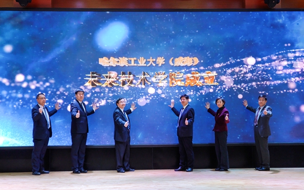 徐晓飞宣布未来技术学院成立,并与张伟、孙法春、张淑娣、刘海、毕可志共同为哈工大(威海)未来技术学院揭牌。仪式由校区副校长兼未来技术学院院长钟诗胜主持。