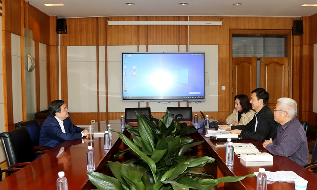 徐晓飞及其他授课教师一起备课,探讨相关话题。(学校供图)