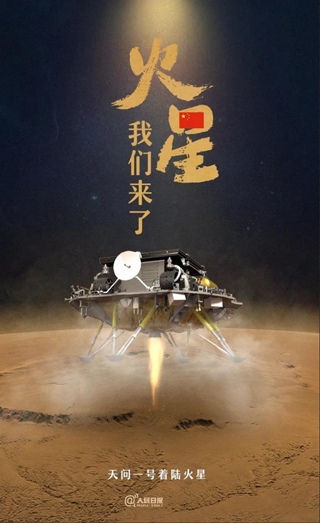 海报:火星,我们来了(来源:人民日报微信公众号)