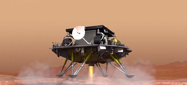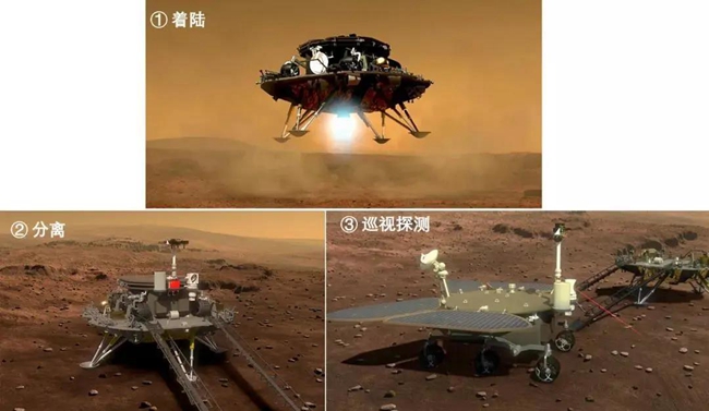 2021年5月15日7时18分,我国首次火星探测任务天问一号探测器在火星乌托邦平原南部预选着陆区着陆,在火星上首次留下中国印迹,迈出了我国星际探测征程的重要一步。后续,祝融号火星车将依次开展对着陆点全局成像、自检、驶离着陆平台并开展巡视探测。